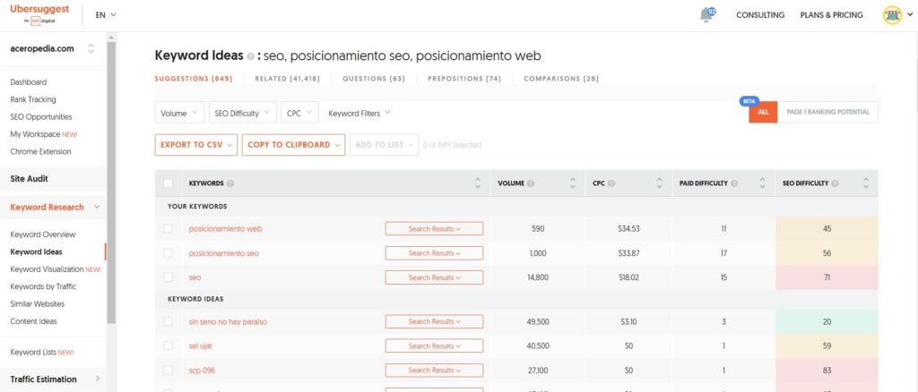 Además, algunas de estas herramientas también permiten filtrar los resultados por volumen de búsquedas, competencia y otros atributos útiles.